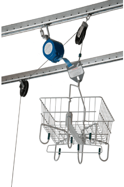 The overhead LOCKERBASKET® Storage System is equipped with a descent control device to prevent a basket from falling accidentally if the operator loses control of the hoisting chain or there is a malfunction in the system. The device contains a centrifugal braking system that will engage if the basket descends too quickly. A second braking device helps to absorb the energy generated while falling making this a unique overhead fall protection system. Once engaged, the descent control device will stay in a locked position until the tension on the hoisting chain is relieved.